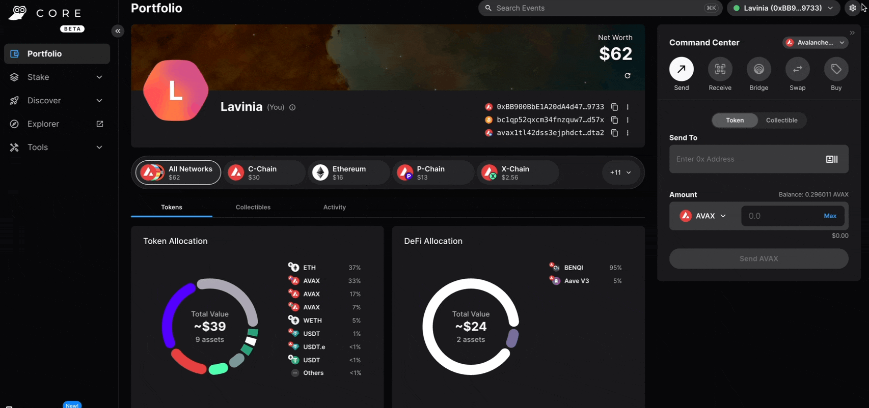 Core web is a free, all-in-one command center that gives users a more intuitive and comprehensive way to view assets, and use dApps across the Avalanche network, its various Avalanche L1s, and Ethereum. Core web is optimized for use with the Core browser extension and Core mobile (available on both iOS & Android). Together, they are key components of the Core product suite that brings dApps, NFTs, Avalanche Bridge, Avalanche L1s, L2s, and more, directly to users.